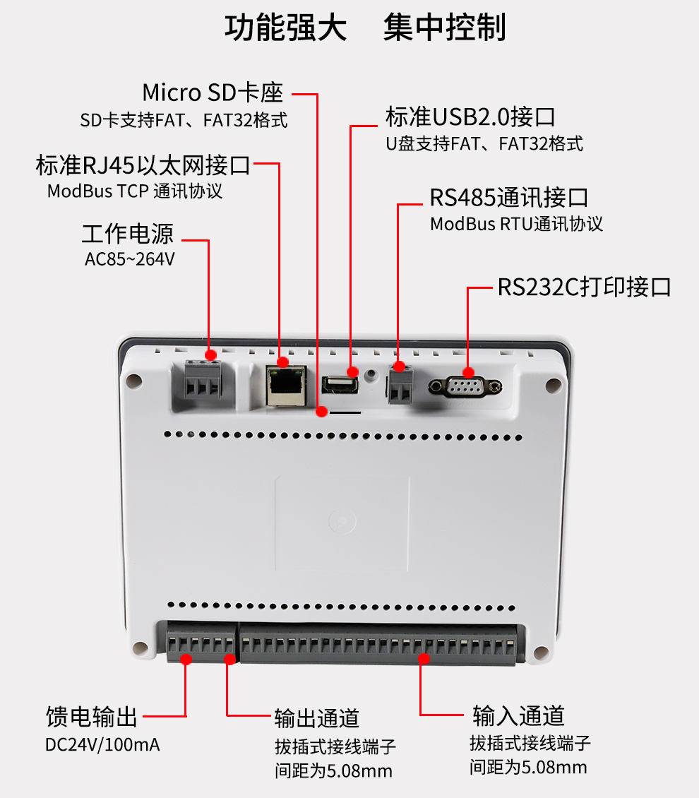 OHR-T系列觸摸超薄無紙記錄儀采用新型大規(guī)模集成電路,對輸入、輸出、電源、信號采取可靠保護(hù)和強(qiáng)抗干擾設(shè)計。8路萬能信號輸入(可組態(tài)選擇輸入:標(biāo)準(zhǔn)電壓、標(biāo)準(zhǔn)電流、熱電偶、熱電阻、頻率、毫伏等)。可帶4路報警輸出,1個饋電輸出,RS485通訊接口,以太網(wǎng)接口,微型打印機(jī)接口和USB接口,SD卡插座。