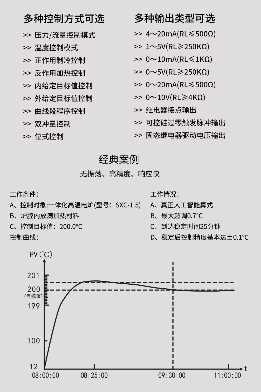 OHR-H300系列彩色調(diào)節(jié)無紙記錄儀采用真正的人工智能算式,儀表啟動自整定功能,可根據(jù)被控對象的特性,自動尋找最優(yōu)參數(shù)以達到很好的控制效果,無需人工整定參數(shù)。控溫精度基本達±0.1℃,無超調(diào)、欠調(diào),達國際先進水平。24路萬能輸入(可組態(tài)選擇輸入:標(biāo)準(zhǔn)電壓、標(biāo)準(zhǔn)電流、熱電偶、熱電阻、毫伏等)其中可帶8路控制輸入。