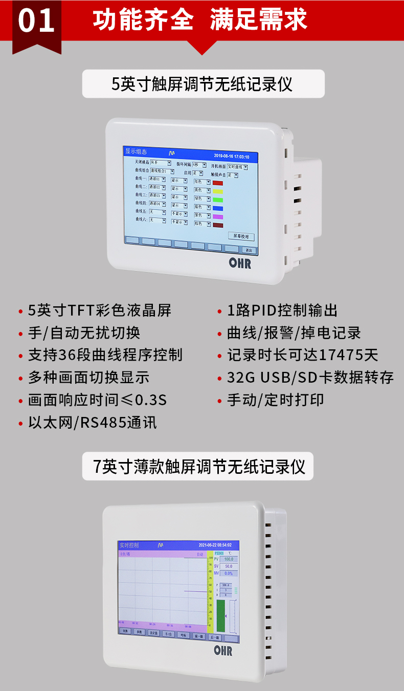 OHR-T系列觸摸超薄調(diào)節(jié)無(wú)紙記錄儀