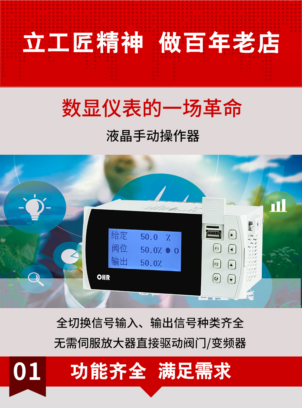OHR-G500/G500R系列液晶手動(dòng)操作器/記錄儀適合作為DCS系統(tǒng)回路調(diào)節(jié)控制輸出和智能調(diào)節(jié)器控制輸出的備用操作器使用,能接受與系統(tǒng)同步的給定信號和反饋信號,根據(jù)給定信號輸出相應(yīng)的控制量.
