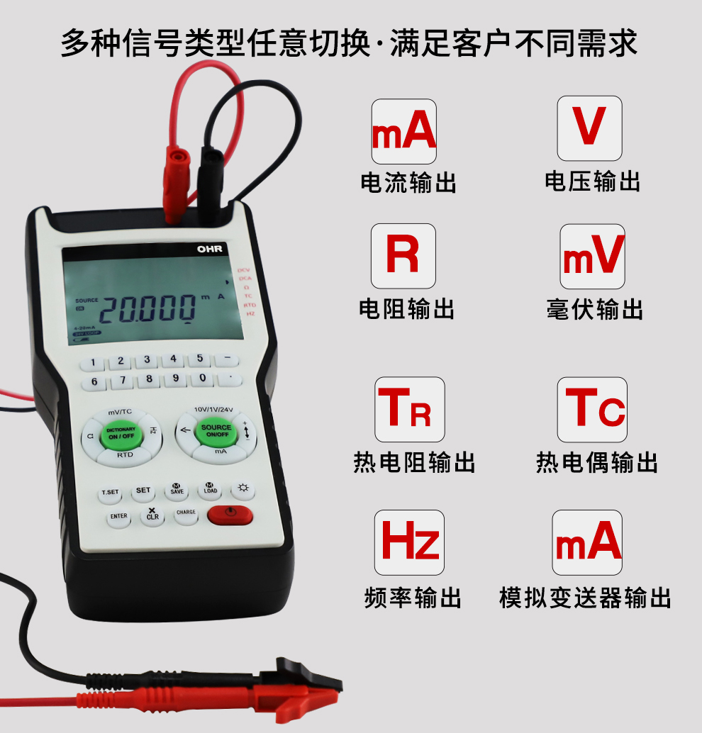 OHR-B00信號(hào)發(fā)生器是一種多功能、高精度的便攜式信號(hào)源,可用于輸出各種規(guī)格的工業(yè)信號(hào),支持電流、電壓、電阻、頻率、熱電偶、熱電阻等多種信號(hào)輸出類型,最高精度可達(dá)0.01%F.S,是工業(yè)現(xiàn)場(chǎng)、實(shí)驗(yàn)室以及各類儀表制造商必備的計(jì)量測(cè)試工具。