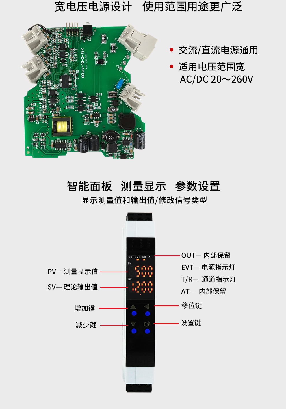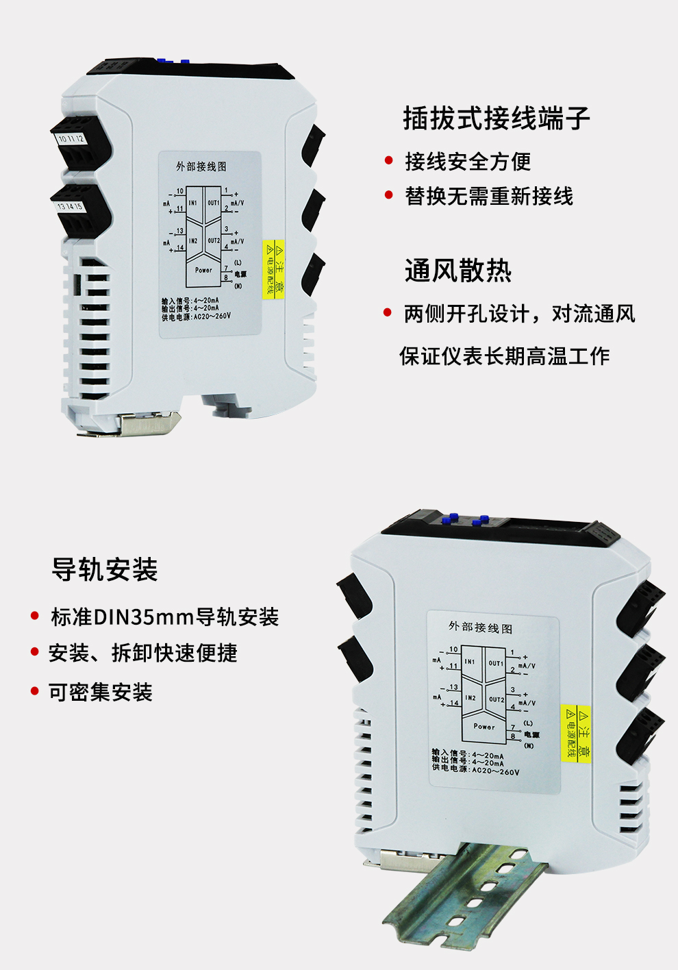 OHR-X31系列導軌式智能隔離器將現(xiàn)場的直流電壓或電流信號經(jīng)過隔離傳送,轉(zhuǎn)換成所需的信號給其它儀表??梢耘cDCS、PLC等系統(tǒng)配套使用,從而提高工業(yè)生產(chǎn)過程自動控制系統(tǒng)的抗干擾能力,保證系統(tǒng)的穩(wěn)定性和可靠性。寬電源設計:20-260V交直流供電。配置高清顯示單元,通過輕觸按鍵設置每個通道的參數(shù)及通道之間的切換。