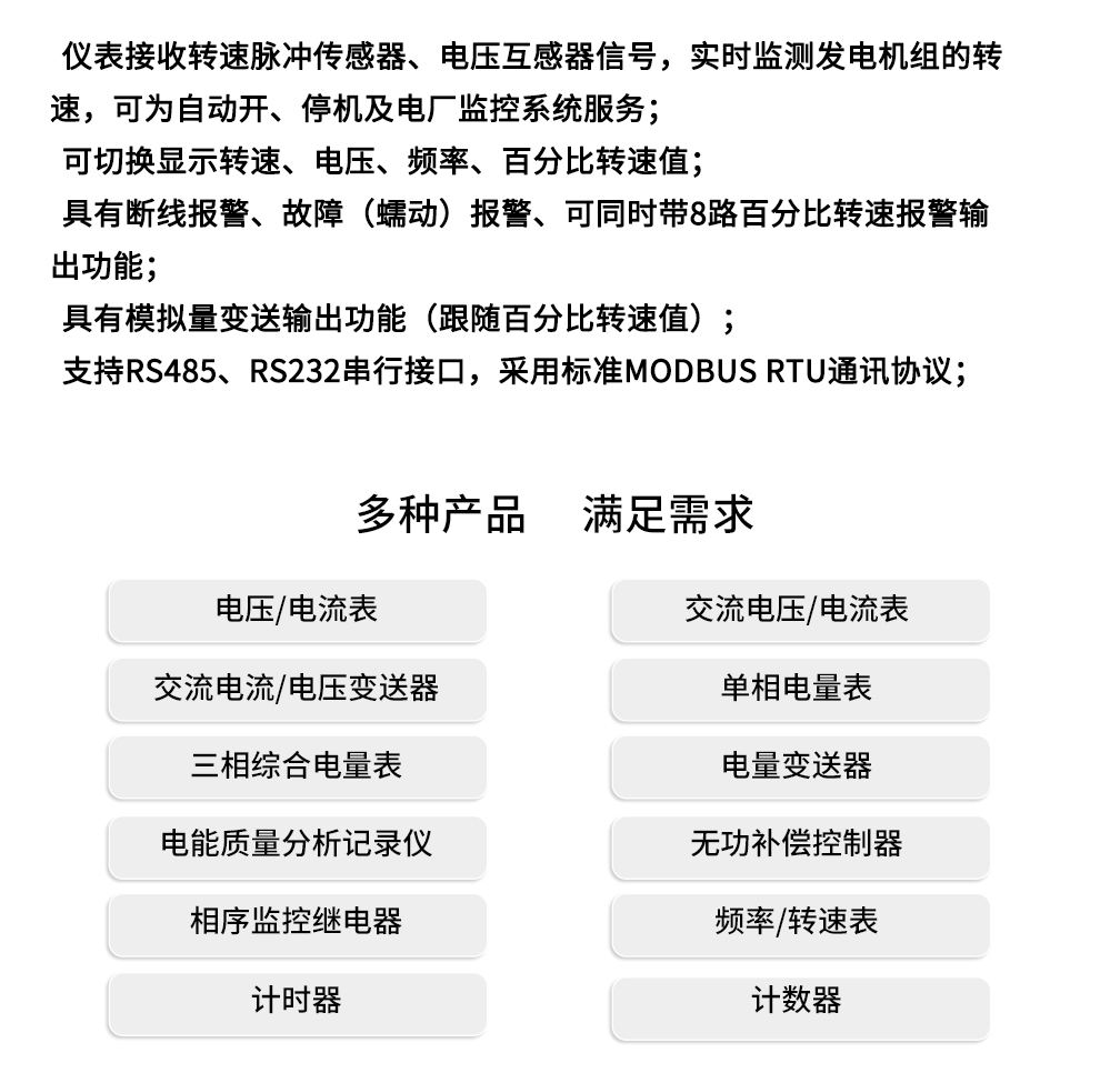 OHR-C800系列電廠專用轉(zhuǎn)速表適用于測量發(fā)電機(jī)組轉(zhuǎn)速,儀表雙屏顯示轉(zhuǎn)速、電壓、頻率、百分比轉(zhuǎn)速,有峰值記憶顯示、斷線報警、故障(蠕動)報警、8路繼電器跟隨百分比轉(zhuǎn)速輸出、模擬量變送輸出、RS232/485通訊接口等功能。