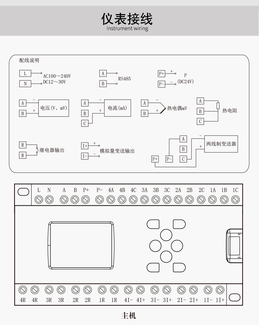 OHR-PR40系列數(shù)據(jù)控制器多重保護和隔離設(shè) 計,抗干擾能力強,可靠性高。儀表采用主副機結(jié)構(gòu)設(shè)計,主機可提供4路萬能信號輸入,通道間 相互隔離;4限報警輸出、4路變送輸出,饋電輸出、RS485通訊、以太網(wǎng)通訊等功能,連接副機可將I/O容量 擴展至8路輸入和8限報警輸出、8路變送輸出。