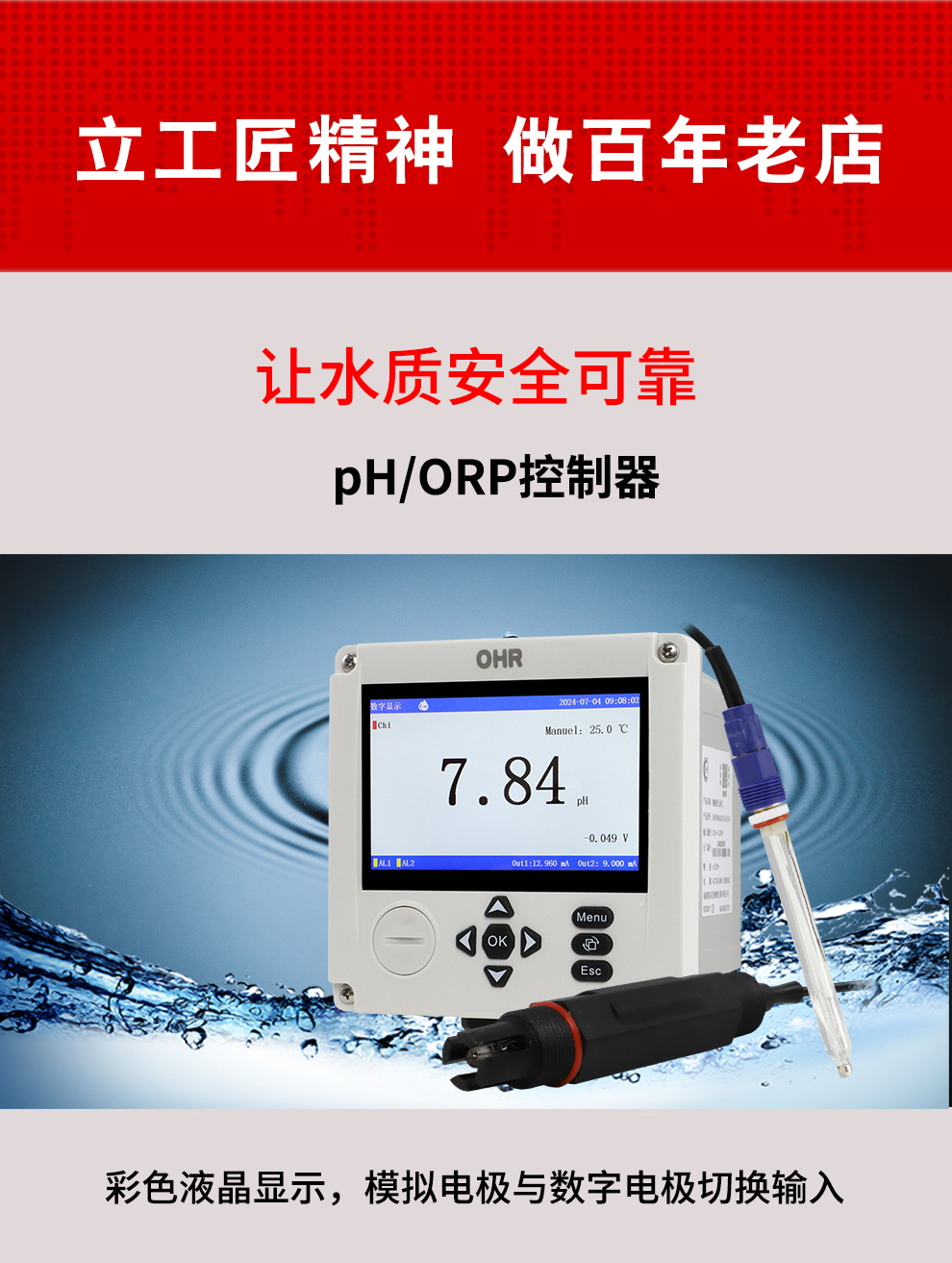 OHR-PH70系列pH/ORP控制器是一款在線化學(xué)分析控制器,主要用于測(cè)量水溶液的pH值 和ORP值。用戶可以通過配接相應(yīng)的pH電極或ORP電極來進(jìn)行測(cè)量。該控制器能夠?qū)崟r(shí)監(jiān) 測(cè)溶液的酸堿度情況,為相關(guān)工業(yè)過程提供準(zhǔn)確的化學(xué)分析數(shù)據(jù)。