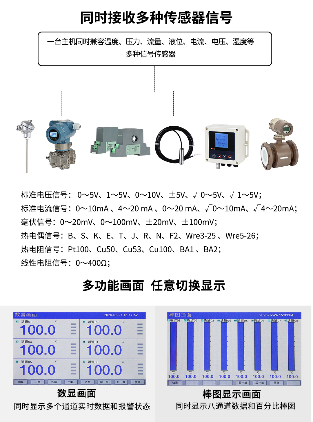 NHR系列觸摸屏數(shù)顯表采用新型大規(guī)模集成電路,對輸入、輸出、電源、信號采取可靠保護和強抗干擾設計。4路萬能信號輸入(可組態(tài)選擇輸入:標準電壓、標準電流、熱電偶、熱電阻、毫伏等)??蓭?路報警輸出,1個饋電輸出,RS485通訊接口,以太網(wǎng)接口,微型打印機接口;具有強大的顯示功能,實時測量顯示,棒圖顯示,報警狀態(tài)顯示,組態(tài)畫面顯示等。