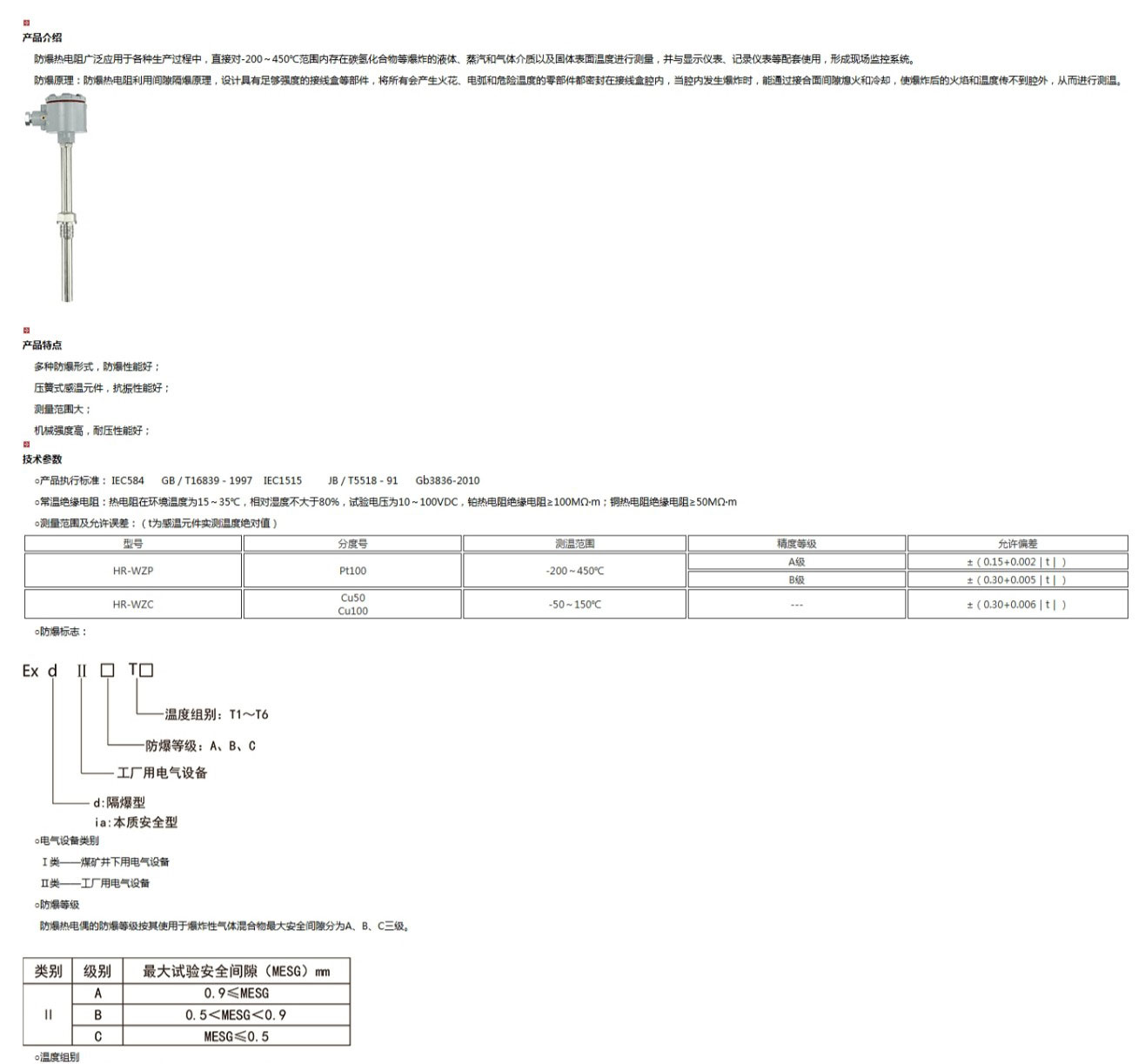 防爆熱電阻廣泛應(yīng)用于各種生產(chǎn)過(guò)程中,直接對(duì)-200~450℃范圍內(nèi)存在碳?xì)浠衔锏缺ǖ囊后w、蒸汽和氣體介質(zhì)以及固體表面溫度進(jìn)行測(cè)量,并與顯示儀表、記錄儀表等配套使用,形成現(xiàn)場(chǎng)監(jiān)控系統(tǒng)。