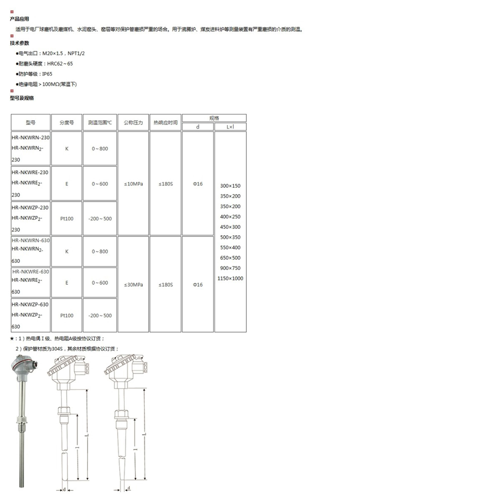 耐磨熱電偶(阻)采用等離子噴漆技術(shù)、高鉻鑄鐵和高溫合金不同材料制成的耐磨保護(hù)管,專門為高、中、低溫耐磨環(huán)境的測(cè)量場(chǎng)合設(shè)計(jì)制造的,可適用于循環(huán)流化床、沸騰爐、水泥回轉(zhuǎn)窯尾煙室